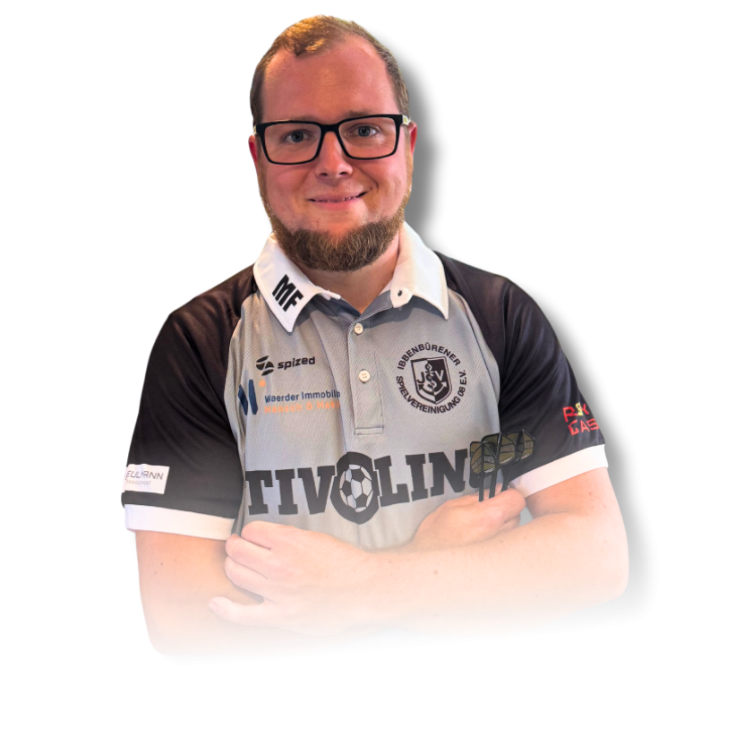 René ist einer unserer beiden Initiatoren. Seit 2 Jahren spielt der Wahl-Ibbenbürener immer intensiver Darts. Mittlerweile fliegt dabei regelmäßig ein 45-50er Average ins Board. Der bekennende Target-Fan tobt sich bei uns vor Allem bei der Gestaltung der Website und des Shops aus. Außerdem ist der Ex-Footballer für Social Media und den Kontakt zu unseren Partnern zuständig.